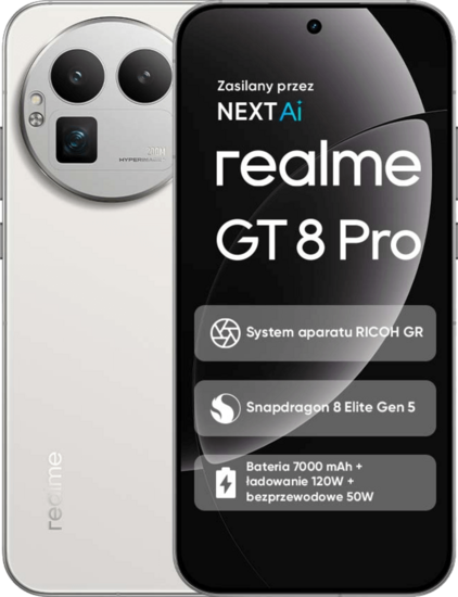 realme GT 8 Pro to flagowiec stworzony we współpracy z legendarną marką RICOH GR, znaną z perfekcyjnej kolorystyki i tonalności w fotografii ulicznej. Smartfon oferuje potrójny zestaw aparatów: główny 50 MP z OIS, ultraszerokokątny 50 MP oraz peryskopowy teleobiektyw 200 MP z 3x zoomem optycznym, który zapewnia niesamowitą ostrość i naturalną plastykę obrazu. Dopełnieniem jest 32 MP aparat do selfie, idealny do kreatywnych ujęć. Dzięki trybom filmowym RICOH GR i zaawansowanej obróbce tonalnej, Twoje zdjęcia i filmy będą wyglądać jak z profesjonalnego aparatu.
